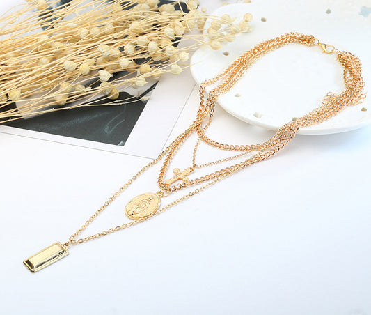 【Dn240122-12】個性項圈聖母十字架多層吊墜項鍊