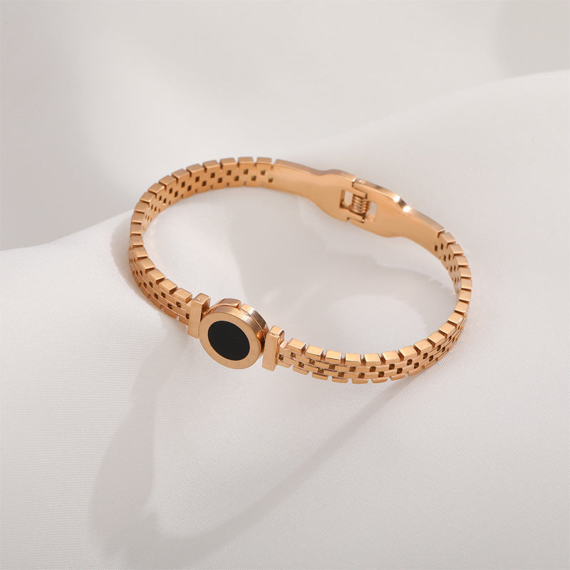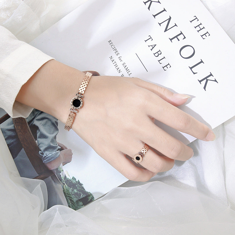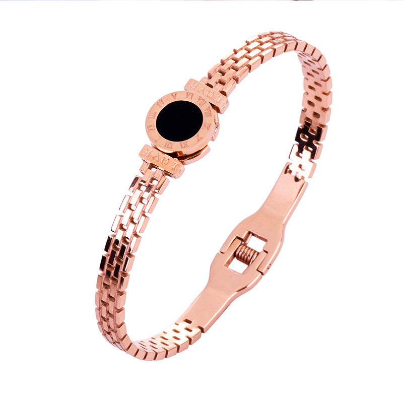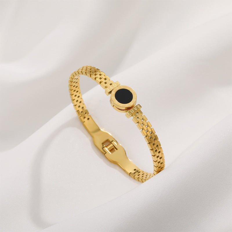 【Cb231225-10B】Love羅馬數字鈦鋼18k金手鐲