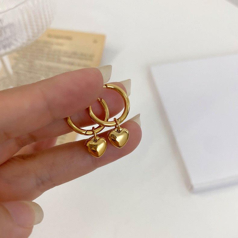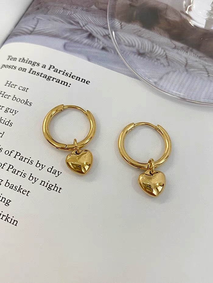【Ce231225-2B】韓國時尚鈦鋼鍍18K金愛心耳環
