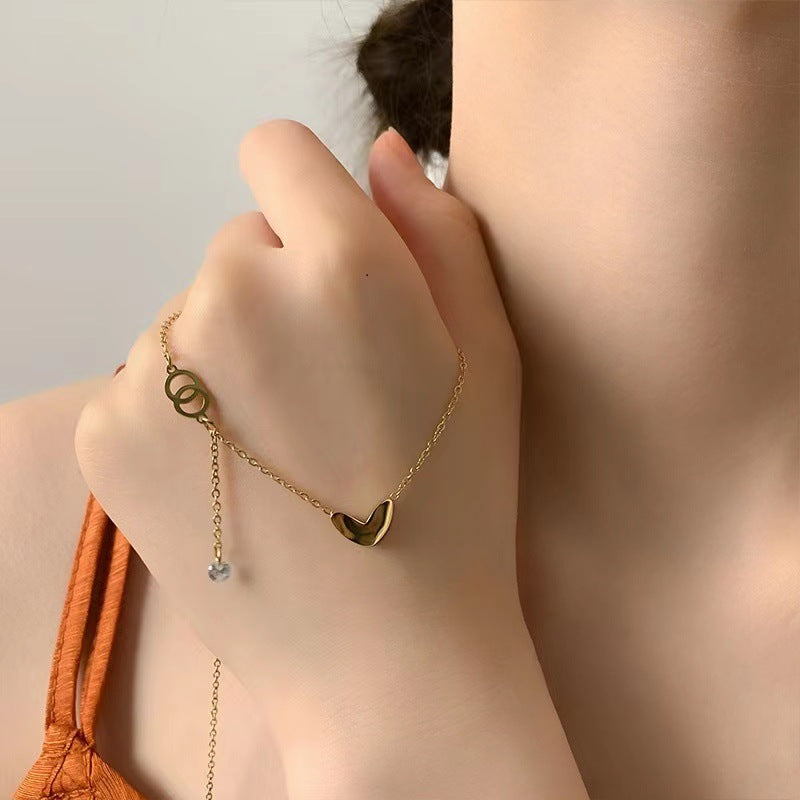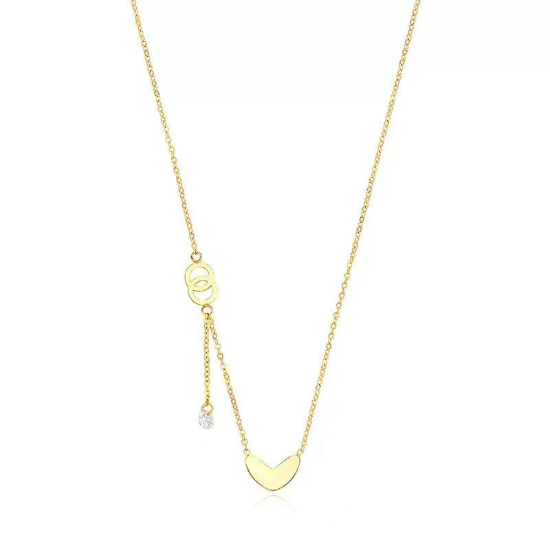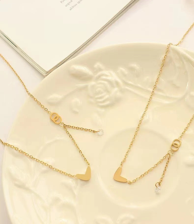 【Cn230801-9B】韓版愛心流蘇鋯石吊墜鈦鋼抗敏項鍊鎖骨鏈