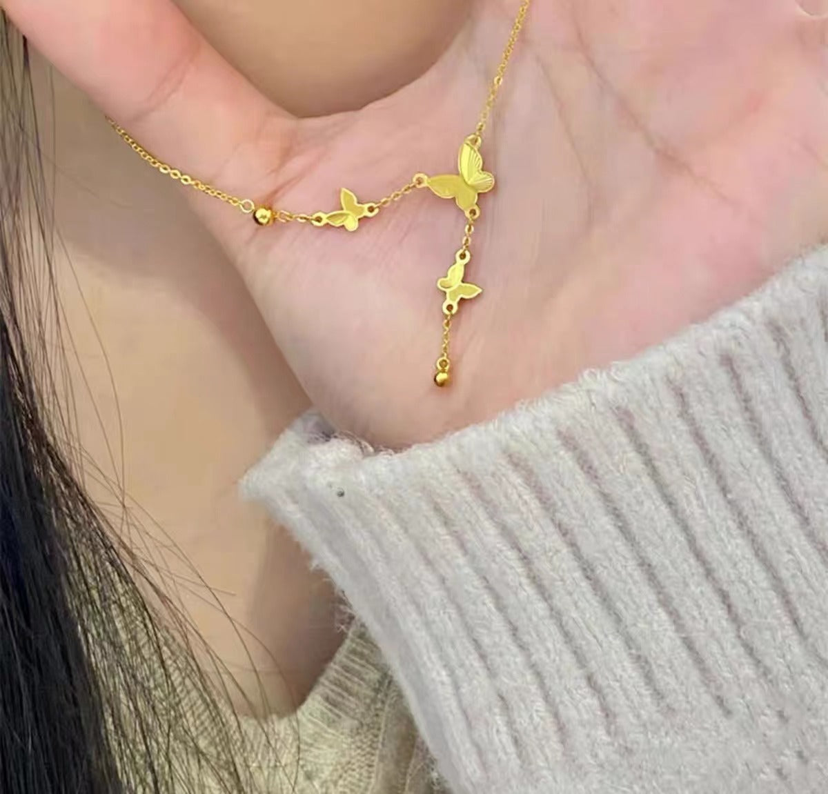 【Cn231225-1B】蝴蝶流蘇鍍18K輕奢鎖骨鏈