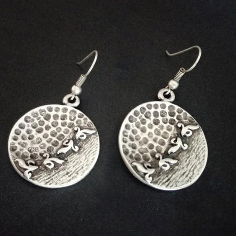 【De231225-10】捶打紋做舊泰銀雕花耳飾