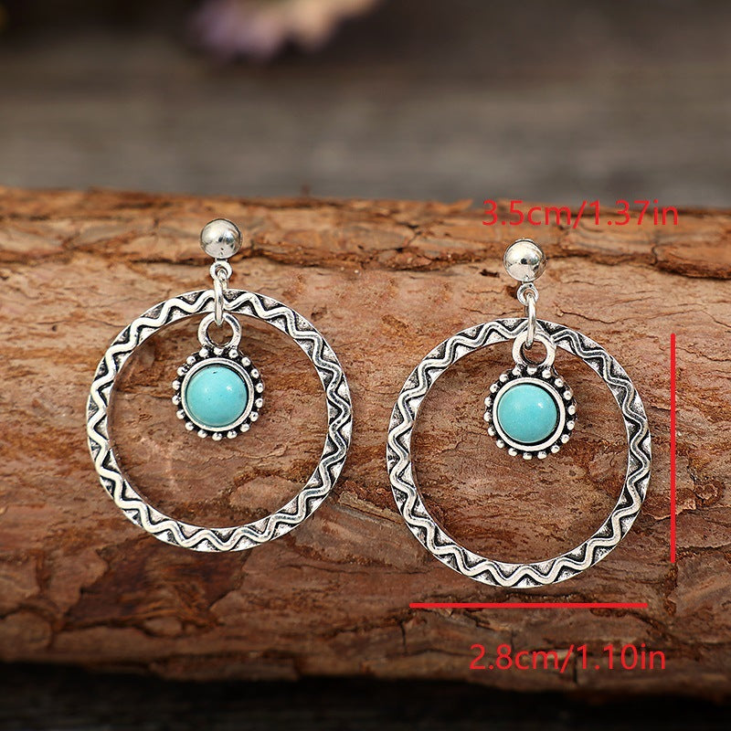 【De231225-16】復古圓形鏤空鑲嵌綠松石耳環