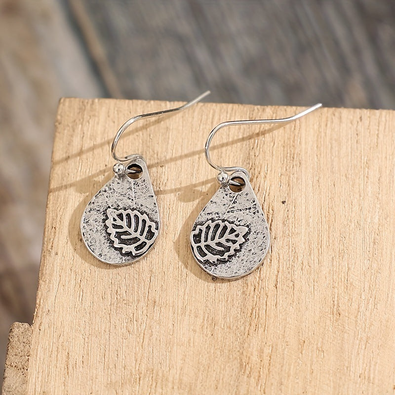 【De231225-19】水滴樹葉紋路時尚耳飾