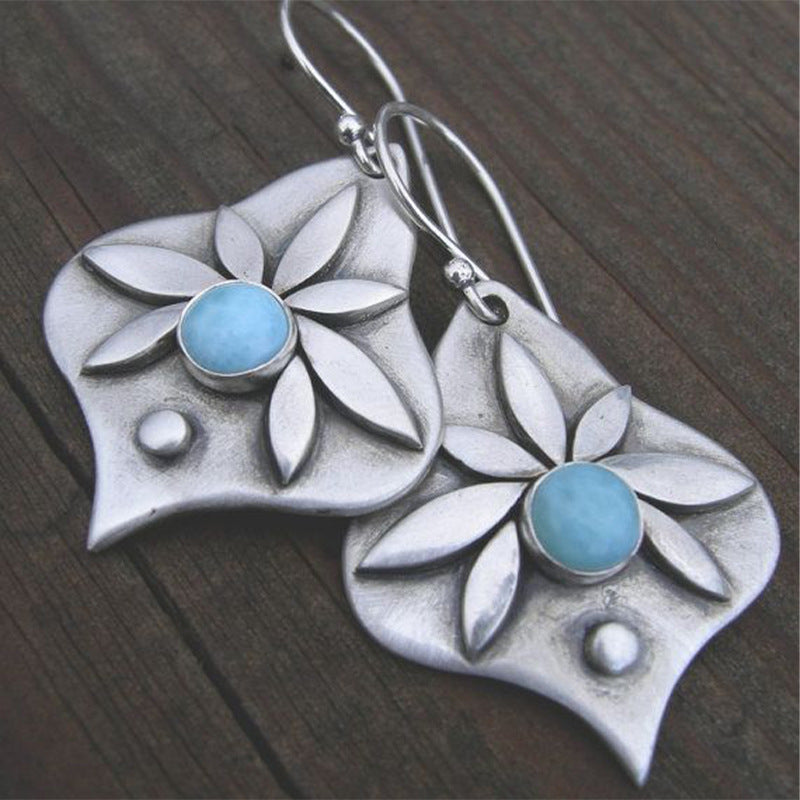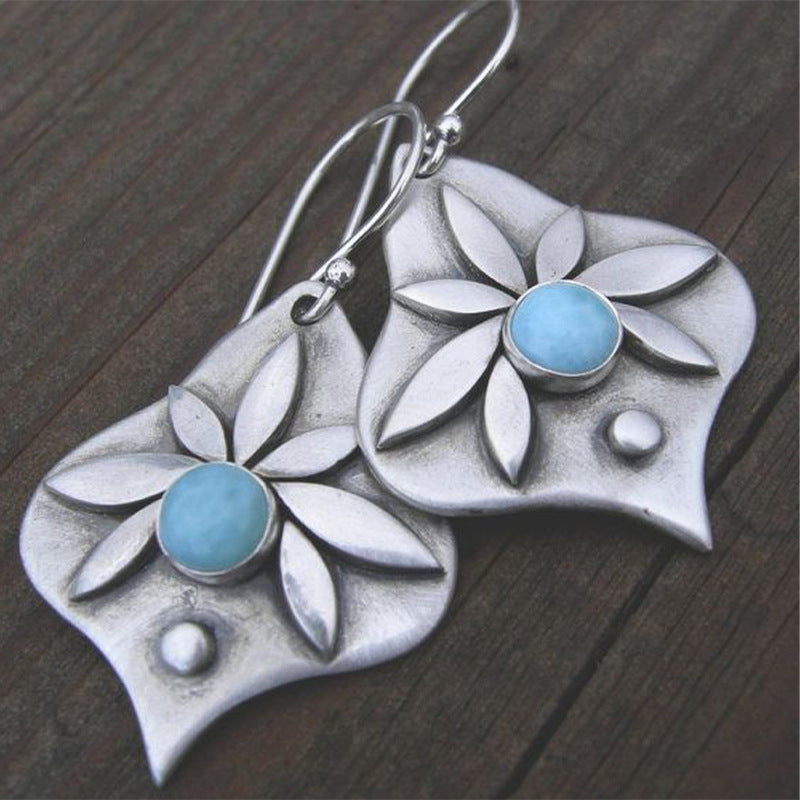 【De240115-5】幾何立體花邊復古鑲嵌松石耳飾