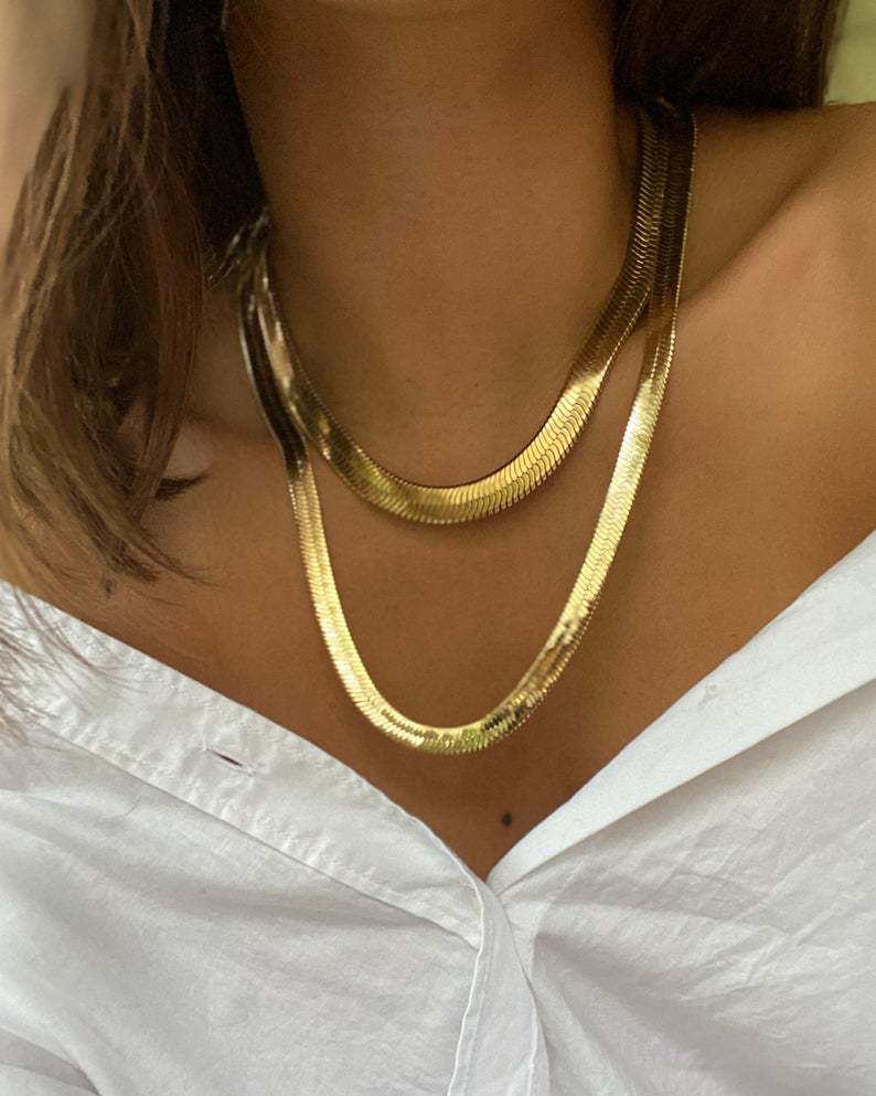 【Dn231001-5A】金屬蛇骨項鍊復古潮流扁平蛇鏈男女分層鎖骨鏈D