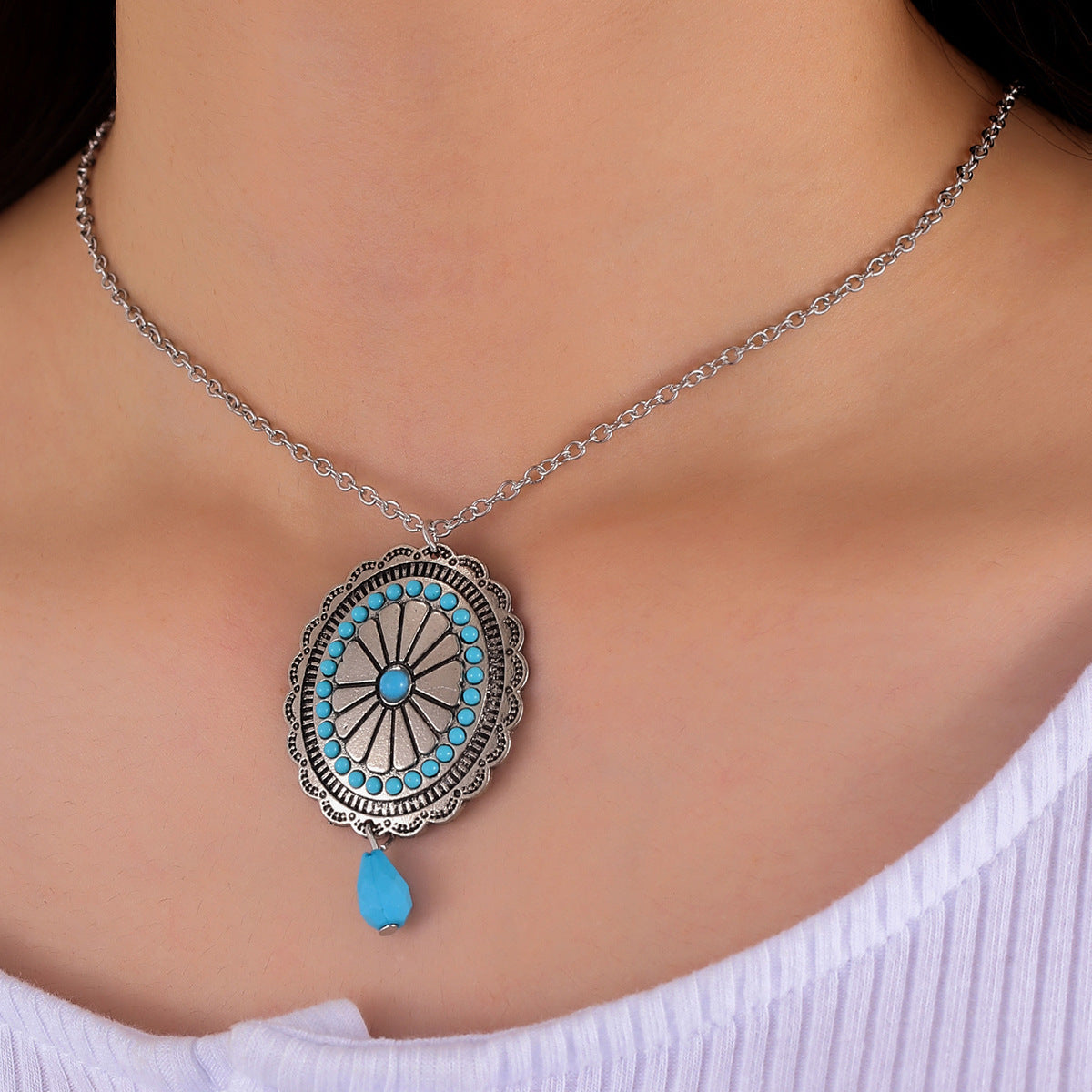 【Dn240108-1】波西米亞綠松石吊墜項鍊